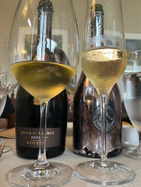 ちょっと(本当はすごく!)贅沢なワイン会② 初めましての3/3さん&mackyさんご夫妻ご夫妻から素敵なシャンパーニュ ボワゼル シャンパーニュ ジョワイヨ・ドゥ・フランス2008 ピノ・ノワール 約50%、シャルドネ 約50% 艶めく美しいゴールド コク深くなんとも言えない長い余韻♡ 同じセパージュでVtも2年しか違わないのに インフィニットはフレッシュ ボワゼルは熟成 飲み比べが楽しすぎます〜 素晴らしいシャンパーニュ ごちそうさまでした♪ お二人の仲睦まじいご様子も(*´꒳`*)ステキ♡♡♡ お気遣いのお土産もありがとうございましたペコー