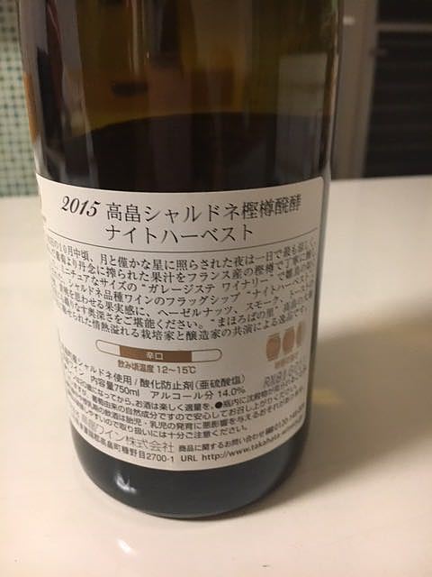 TAKAHATA WINERY Chardonnay Night Harvest 2015 Luna Plena