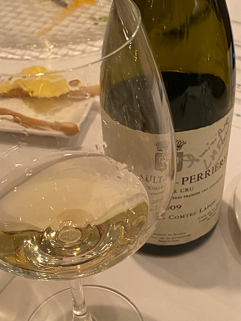 グランドフィナーレ こんなワイン会やってみたい会3/7 コント•ラフォン ムルソー 1er ペリエール 2009 白ワインはご存知コントラフォン。 一級畑の筆頭格ペリエール、のドミニク•ラフォンのサイン入りボトル。もうこれだけでお腹いっぱいのボトルであります。 柔らかくも芯のある吸い込まれそうな香り。 口にすると膨大なミネラルが広く広く広がっていきます。ミネラリーなのになんというボリューム感。 美味しさに身体が包まれていくようです。 既に放心状態であります。 ラフォン好きで良かった(謎w)