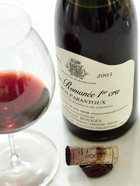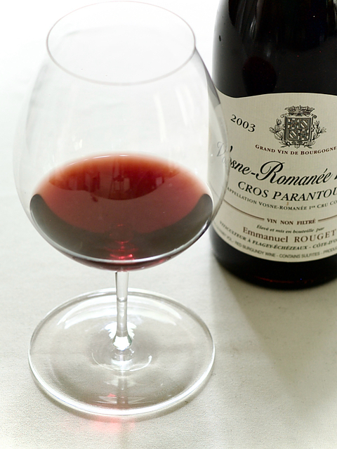 誕生日ブラインド・ワイン会。 ルージュのフライト2本目はドメーヌ・エマニュエル・ルジェ・ヴォーヌ・ロマネ・プルミエ・クリュ・クロ・パラントゥ2003を頂きました。 全体的にオレンジかかった明る目のルビー色。 赤黒果実にオリーブやハーブ、ショコラにアース、スパイスなどのエシェゾーに比べてもう少し清涼感のあるアロマ。 こちらもよく熟した果実味ですが、少し強めの酸味がバランス良く果実味に融合し、細かく皮膜のようなタンニンからのエレガントで長い余韻までとてもまとまりの良い熟成感。果実味に未だフレッシュさも感じますが、密度は濃くルジェらしい果実感が絶妙でした。 エシェゾーはスケール感が大きくボリューミーでしたが、クロ・パラントゥはバランス感、複雑味に富んでおりました。
