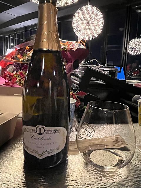 友人が管理してるミュージックマンション最上階のパーティースペースで友人の歌のリサイタル。ワインは友人のイタリアワイン屋さんより、オードブルも友人に頼んで、全て手作りの会。まずはフランチャコルタから。