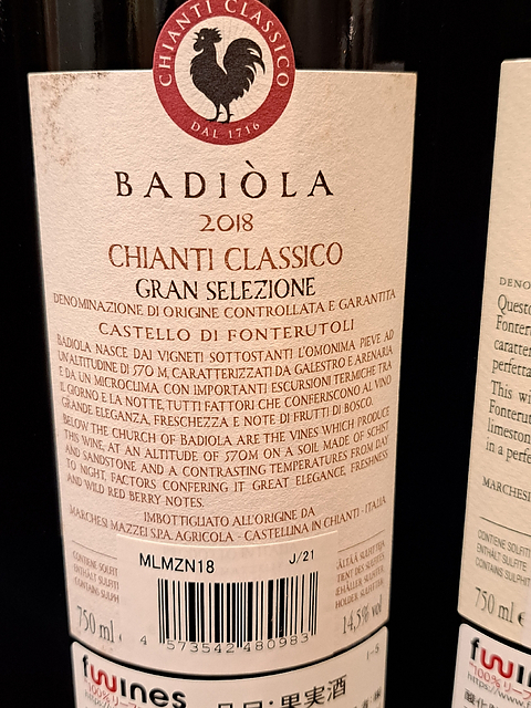 サンジョベーゼ会 マッツェイのグラン・セレツィオーネ 畑違い3種 ヴィコレジオ 標高330m 三本の中ではもっとも果実味が豊か カステッロ・フォンテルトーリ 標高470m 中間、フラワリー バディオラ 標高570m 大変シャープな酸味、エレガントだが厳格 キャンティクラシコの本質は、やはりとても厳格な酒。 Tボーンステーキの様な食事が供に最適。