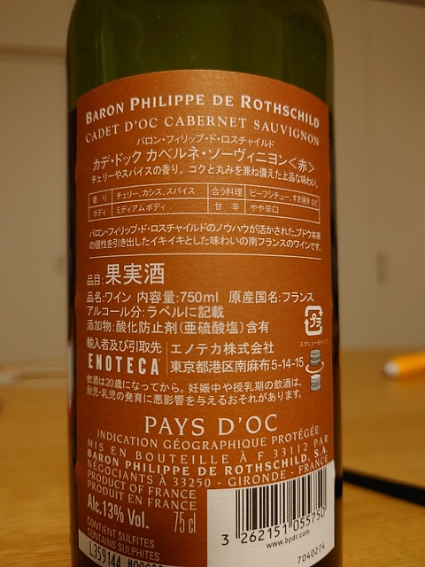 カベルネ・ソーヴィニヨンだけど重すぎない。呑みやすい。