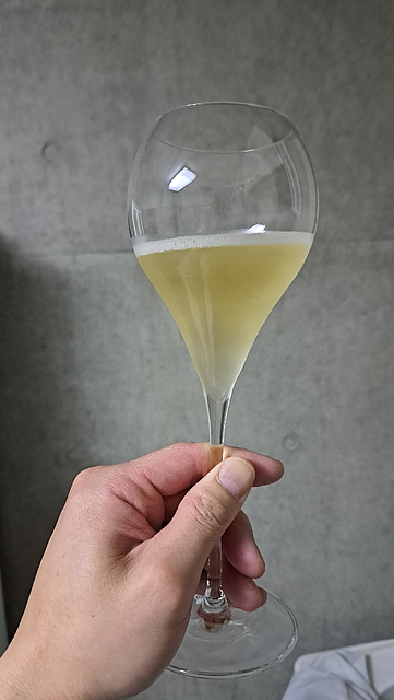 ⭐3.3 きめ細やかな泡が美しくグラス中を立ち昇ってクラウンを形成、柑橘やりんご、洋梨、若干にヨーグルトの様とミルク感。 フレッシュな酸と果実味、心地よくクリーミーな泡が口中で踊っている??w アフターは黄色い果実の香りが続いていきます。