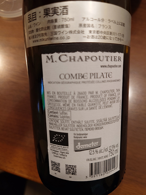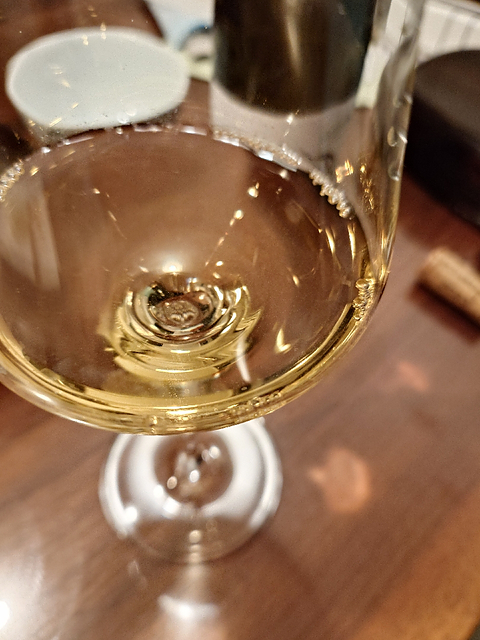 輝きのあるイエローの色調。 マルメロ、洋ナシに白桃、そこにジャスミンなどの華やかな花の香り、花の蜜。アロマティックです。 開けたては少し発泡を感じ、ドライながら果実の味わいと華やかなフレーバーがあり、甘さを感じます。酸は爽やかです。後味には心地よい苦味。 酸が爽やかでもったりした感じが全くなくおいしいデイリーワインです。