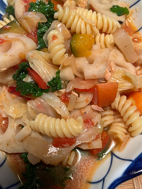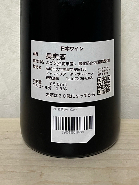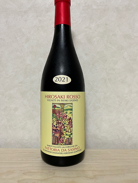 ファットリア・ダ・サスィーノのヒロサキ・ロッソ 2021 日本、青森 メルロー、サンジョヴェーゼ、シラー 濃いめの赤、縁は赤紫。赤黒系果実、森の下草、獣、スパイスの香り。 いろいろ野菜のトマトパスタとともに(^^)