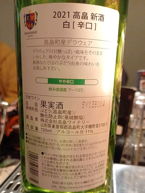 TAKAHATA WINERY 高畠 Takahata Delaware 2021 新酒 辛口