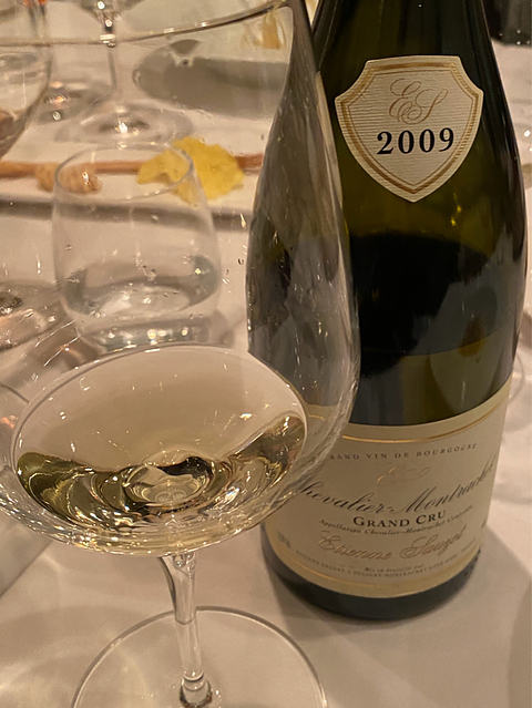 グランドフィナーレ こんなワイン会やってみたい会4/7 エチエンヌ•ソゼ シュヴァリエ•モンラッシェ 2009 もう一本の白ワイン。 ラフォンの対抗馬として用意したのはソゼ、のシュヴァリエ! もちろんビンテージも揃えてます。 果たしてどんな飲み比べとなりますでしょうか。 透明感があるのに甘さも感じる素晴らしい香り。 口に含むと、、キレッキレのミネラルが頭頂部から天に向かって伸びていくかのような、クリアかつエレガントな味わい。 すんばらしい。 水平方向に広がっていくペリエールと、垂直方向に伸びていくシュヴァリエ。 甲乙つけ難い味わいのちがいです。 どちらも素晴らしくてもう倒れそう笑