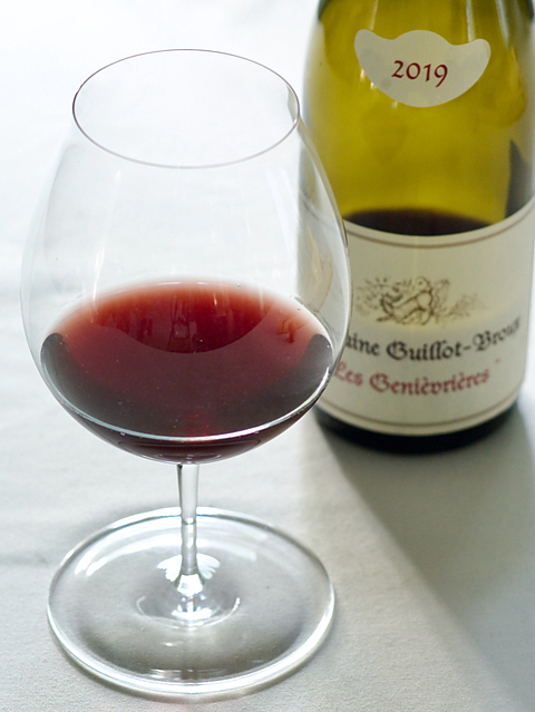ドメーヌ・ギヨ・ブル・ブルゴーニュ・レ・ジェニエヴリエール2019を頂きました。白と同じジェニヴリエールの畑に植えられたピノで、初リリースは2009年だそうです。ビオディナミ認証で、とても好きな作り手です。 エッジがブリック掛かったしっかりとしたルビー色。 淡いベリーやプラム、赤紫蘇にスパイス、アースなど少し熟成感感じるアロマ。 ミディアム・ボディの綺麗な果実味で、酸味はスパイシーで程よく、アイアン系のタンニンを感じ、美しいストラクチャーのとても綺麗な余韻。ゆっくりと旨味が上がって来ます。 翌日は果実味が落ち着き、オリーブやマッシュルーム、少しビオ系要素を多く含んだフレーバーに変わっていました。