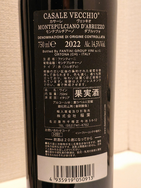 それほど重すぎることはないですが、スモーキーでカカオの香ばしさがしっかり。モンテプルチアーノは早飲み向きとのことですが、確かにそんな感じ。