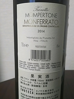 モンペルトーネ 2014 イタリア ピエモンテ州 生産者 プルノット 久しぶりの赤ワイン。 イタリアの赤ワインも前のんだのが覚えていないぐらい久しぶり。 エノテカオンラインのGW福袋に入っていました。 バルベーラ60% シラー40% 黒果実とスパイスの香り。 コーヒは感じられず。 タンニンは柔らかめで、のみやすく期待以上に美味しかったので嬉しい~(^^)
