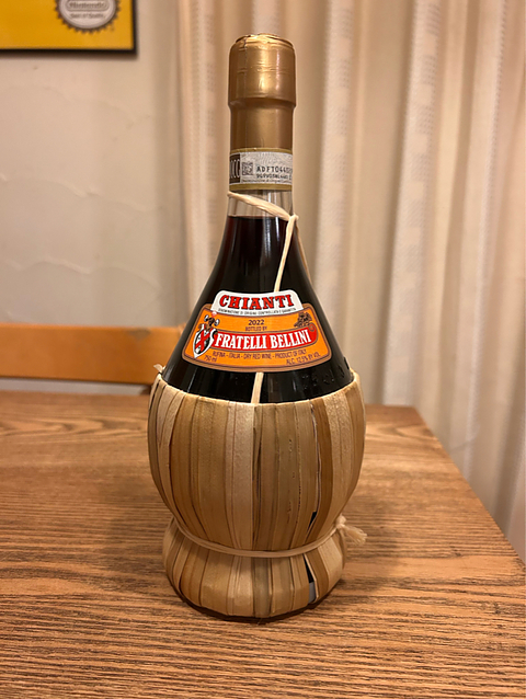 CHIANTI FRATELLI BELLINI イタリア料理店等で見かけるワイン。 藁で包まれたボトルが可愛く、インテリアとしてぶら下げてあったりしてずっと気になっていたワインでしたが、 久しぶりに訪れた近所の酒屋で出会いまして、メサ嬉しい〜 香りも風味も割と酸味がありますが、タンニン優しくてフレッシュフルーティな赤い果実味感じて飲みやすいです。 一緒に食べたアヒージョともよく合い、大満足♪ ワインも勿論ですがボトルに手間かかってるのに1800円と割と安くて、今後この価格で手に入るのかちょっと心配かなぁ。 ただ、この特徴的な形のボトルはセラーには入らなかった‥ その辺に置きっぱになっちゃたw