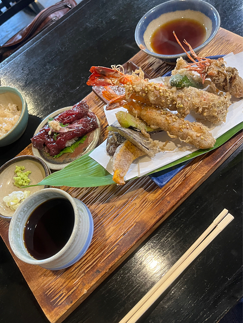 バジリカータ州/イタリア アリアーニコのスパークリング alc13% ノンドサです。 淡麗辛口の細やかな泡 キレがあってalcoholの強さも感じます。 ウエット系のチーズに蜂蜜がとてもこの泡に合いました。 お昼に頂いた亀戸のお蕎麦屋さんの天ぷら♡ 衣は蕎麦粉です。 十割蕎麦も胡麻たっぷりのツユも美味しく、身体に良いことをした気になりました〜。 握りは「クジラ」なんですよ!