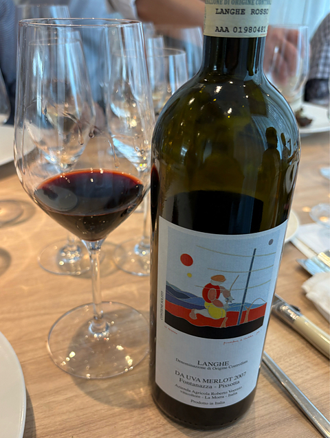 2007 ロベルト・ヴォエルツィオ ランゲ・メルロー〝ピッソータ” ピエモンテ/イタリア vinicaに感謝✨ 9/27ワイン会@神田三崎町 divino・その⑥ 6本目は、引き続き赤のターンで私の持ち込み。この日、唯一のイタリアワインです。とはいえ、ピエモンテ産のメルローですから、「フランス」を継続している感もありますね(苦笑) ロベルト・ヴォエルツィオは、凄いバローロや素晴らしいバルベーラのつくり手として、私の心に刻まれている生産者です。 ただ、極く少量ですがメルローもつくっていて、それがなかなか手に入らない「幻のメルロー」…それがこのピッソータでした。 いつか絶対に飲みたいものだと、思い続けていたら、このワイン会に合わせたようなタイミングで、程よく熟成したボトルが目の前に現れましたので、迷わず飛びつきました。 こちらは、アラン・ユドロ・ノエラのクロ・ド・ヴージョとは、いろいろな意味で対照的、まったく異なるキャラクターのワインでした。 あちらが、強い芳香を中心に、その持てる魅力を全力で外向きに振り撒いている、「遠心力のワイン」だとすれば、こちらは、深い味わいに際立った特徴があり、それらの魅力が、すべて内向きの強いベクトルを持っているかのような、「求心力のワイン」。 どちらのワインも、強く、そして洗練されたパワーを持ち、飲み手の官能を惹きつけてやみませんが、そのパワーの向かう方向が、まるで正反対のように思われるのです。 このワインの香りは、とてもエレガントなブラックカラントやプルーン、ブラックチェリーなどの黒果実香が前面に立ち、赤い花、黒いスパイスや鉱物的なミネラルなどが、十重二十重(とえはたえ)に層を成す、立体的で複雑なタイプ。 うっとりするような素晴らしい香りですが、爆発的に膨張するクロ・ド・ヴージョに比べると、やや控えめな印象は否めません。 ただ、口に含むと、陰影に富んだ味わいの緻密さと、凝縮された旨みの密度、瞬間的に舌をグリップする酸とタンニンの収斂性は、まるでバローロのよう⁉︎ 秀逸なネッビオーロのような厳格さを持った液体が、味覚や嗅覚のコアや、身体の中心を目指して、鋭く深く、そして激しく動きながら、こちら向きにダイブしてくるみたいです! 第一印象は、しなやかで軽やか、旨みの塊のようなエキス感たっぷりの味わいでしたが、「運動」の結果として、口の中だけでなく身体全体、特に体幹で感じる味わいはガッチリと構造的◻︎◇ 手前味噌になるので、ホメ過ぎはちょっと恥ずかしいのですが、これはめちゃくちゃ素晴らしいワインじゃないでしょうか? 直前にいただいた、超弩級のクロ・ド・ヴージョと比較しても、まったく引けを取らないどころか、個人的に好みでいえば、こちらの味わいに軍配を上げたくなる、とんでもない美味しさです♡ 過去にいただいたメルロー100%のワインの中でも、確実に5本の指に入るワインだと思いました✨ ところで、ワイン名の「ピッソータ/Pissota」は、畑の名前のようですが、その意味は、はっきりとはわかりませんでした(泣) それでも執念深く検索していくと、素朴な焼き菓子がヒットしました。 どうやらクグロフのように、中心に丸く穴の開いた焼き菓子のようで(クグロフより平べったい)、PisciotaとかPissotta、Pisotaなど、綴り違いの例も散見されますが、基本的には同じお菓子だと思われます。 なぜそのお菓子の名前が畑の名前になったのか? まったく理解が及びません…詳しい方がいらっしゃったら、是非是非教えてください‼︎