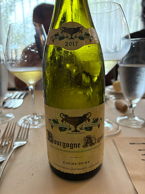 2017 コシュ・デュリ ブルゴーニュ・アリゴテ コート・ド・ボーヌ ブルゴーニュ/フランス #vinicaに感謝 10/18フェアウェル ワイン会@長岡・アンジェ・その4 4本目は、アン爺さんからのスーパー・アリゴテ(笑) こちらは、ひと口含んだ瞬間に唸らざるを得ない、異様に細かいテクスチャ(驚) ただし、極めて静かで、「穏やか」とはちょっと違う「凪(な)いだ」状態の香りと味わいと受け止めました。 いまはピタリと静止していても、一度動き始めたら、やめられない止まらない…そんな巨大なエネルギーを内に秘めたワインという印象です。 飲んでいて「明鏡止水」という言葉を思い出す、そんな武道の達人のようなワインでした♪ アン爺さん、凄いものを飲ませていただき、ありがとうございました✨
