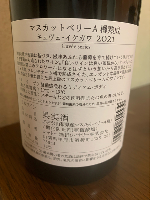 2021 マスカットベーリーA 樽熟成 キュヴェ・イケガワ 山梨 主人のお土産ワイン♪ 美味しいです〜♡ 私の好きななタイプのエレガントなベーリーA✨ フレンチオークで熟成させたエレガントさ(*˘︶˘*).。.:*♡ 果実味豊かで、骨格もしっかりしていて✨ 私の好きなスモーキーさも♡ とっても美味しいベーリーAでした(⁎˃ᴗ˂⁎)♡⤴︎⤴︎ 2023 勝沼醸造 アルガブランカ クラレーザ こちらの甲州も美味しかった♡