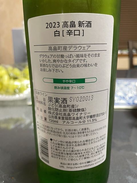 TAKAHATA WINERY 高畠 Takahata Delaware 2023 新酒 辛口