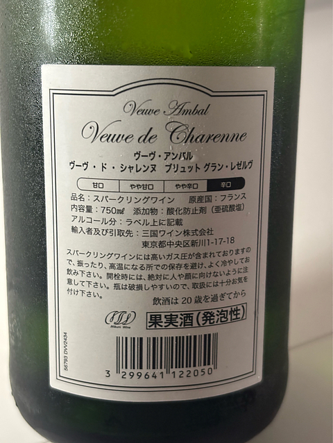 ■産地 : フランス ■格付け : ヴァン・ムスー ■タイプ : 辛口 ■容量 : 750ml ■葡萄品種 : アイレン ■土壌 : ー ■熟成 : マロラクティック発酵 ■アルコール度数 : 11.5% ■飲み頃温度 : 7-10℃前後 ■生産者 : ヴーヴ・アンバル 香りはナッツのよう。 味わいは蜂蜜。 リピートしたい。
