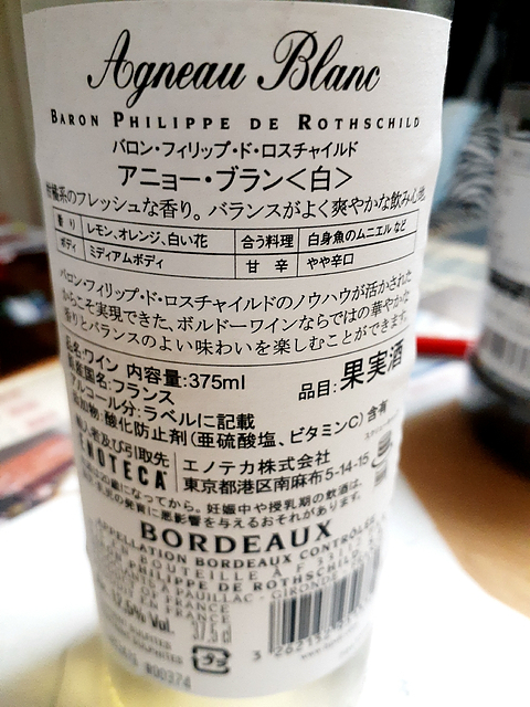 バロン・フィリップ・ド・ロスチャイルド アーニョ・ブラン もうすぐ終わりかと思うと、色々アップしたくなってくる。ということで、以前の出張時に買ったが、飲みすぎてホテルで飲めなくなった一本を開けることにする。 クリアなイエロー、香りは爽やかなレモンかグレープフルーツ。辛口と言えそうな味わいで、余韻もやや辛口。薄味のフードならフードが負けそう。今はワイン単独だけど。