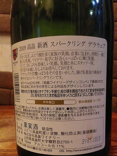 TAKAHATA WINERY 高畠 Takahata Nouveau 2019 新酒 スパークリング