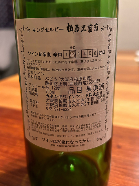 大阪 カタシモワイナリー キングセルビー 柏原黒葡萄 甘めのハーブの様な香り。 爽やかで野生味のある赤くて小さな実を食べている様な風味。 葡萄品種はシラー、ヤマソーヴィニヨン 甲斐ノワール、カベルネソーヴィニヨン アリカント、テンプラニーリョ、 ビジュノワール。 個人的にヤマソーヴィニヨンの個性的な風味が一番強く感じたなぁ。