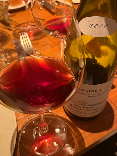 A.F. グロ ヴオーヌ•ロマネ オー•レア 2011 ブラインド•プチワイン会 3/4 赤ワイン1本目はIchiyoさんより。 ブルゴーニュと言うのは確定なので村当てに入ります。 とても明るく華やかな香り。しっかりとしていながらエレガントな印象。 とりあえずシャンボール、いやヴオーヌ•ロマネか2択だなと決め打ち、メオのシャンボール!と予想。 結果はAFグロのヴオーヌロマネ/(^o^)\ ブルゴーニュの名門グロファミリーでした。 実はミシェル、グロフレ、アンヌグロはたくさん飲んできたのですが、AFグロは殆ど飲んだ事が無かった事に気がつきました。いいワインですね〜、Ichiyoさん素晴らしいワインありがとうございました!