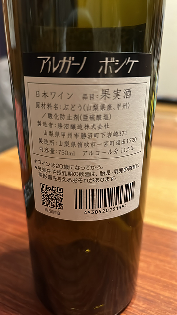 勝沼醸造 アルガーノ ボシケ写真(ワイン) by nekosukiiiiii
