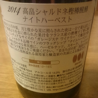 TAKAHATA WINERY Chardonnay Night Harvest 2014 Luna Plena