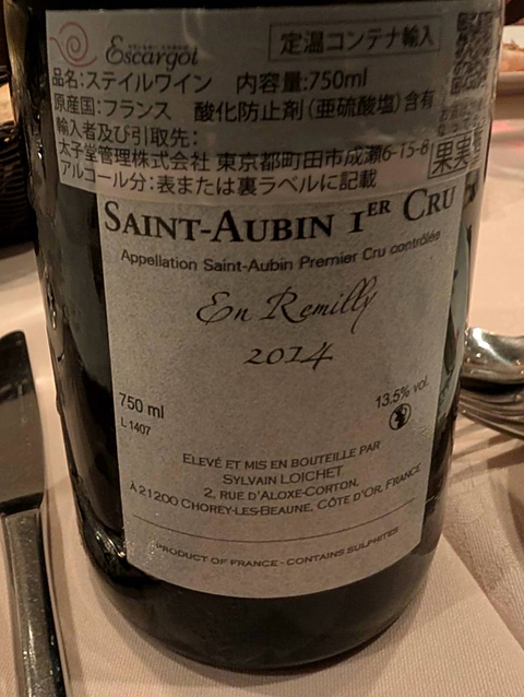 Sylvain Loichet Saint Aubin 1er Cru En Remilly 2014 シルヴァン・ロワシェ サン・トーバン プルミエ・クリュ アン・レミリィ
