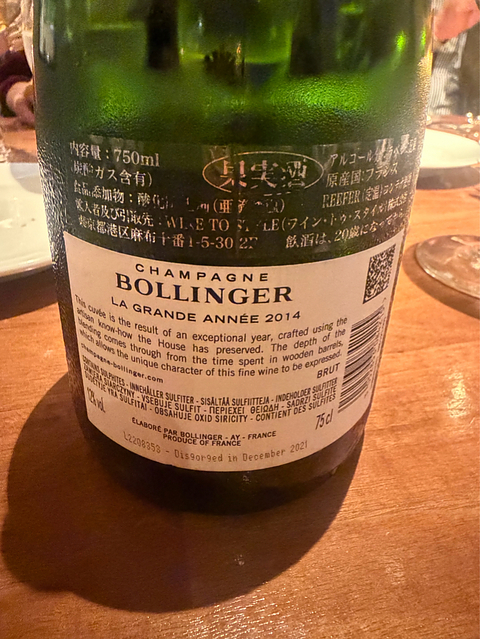 ボランジェ ラ•グランダネ 2014 ブラインド•プチワイン会 1/4 本日は少人数でのミニミニワイン会。 いちおうブラインドの会ですが、乾杯のワイン以外はブルゴーニュと申告済み笑 さてまずは江川さんより、恒例の泡からスタート。 はい、これはドンペリ、、 ドンペリじゃない?? 青リンゴの香り溢れるフレッシュで若々しい味わい。 誰でも知ってる大手メゾンですよ、のヒントから少なくともロデレール、ボランジェではないな!と思ったら まさかのグランダネだったでごさる/(^o^)\ さすがに時間が経つと重心が下がってはきましたが、こんなピチピチなグランダネは初めていただきました。江川さん素敵なシャンパーニュありがとうございました!