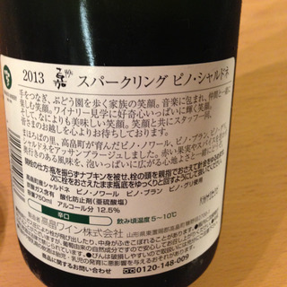 高畠ワイナリーのスパークリングワイン。少しグリっぽい色合いです。辛口ですが割としっかりして高級感あります(*^^*)。それにしても抜栓するの大変だった〜なんでこんな固いんだよ〜(笑)