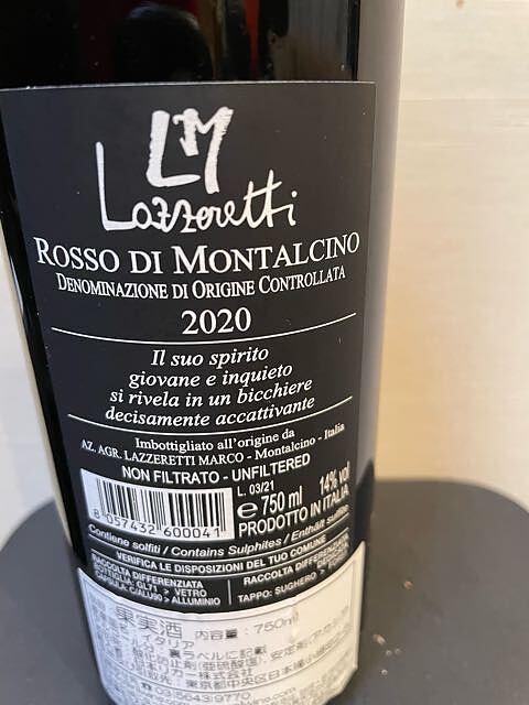 ラッツェレッティ ロッソ ディ モンタルチーノ 2020 サンジョヴェーゼ 綺麗なルビー色に赤と黒の印象的なエチケット 香りはラズベリー、花の香りに少し土のニュアンス 味は程よいタンニンにフレッシュな果実味でしっかり感もありこれまで飲んだロッソディモンタルチーノの中では秀逸かも