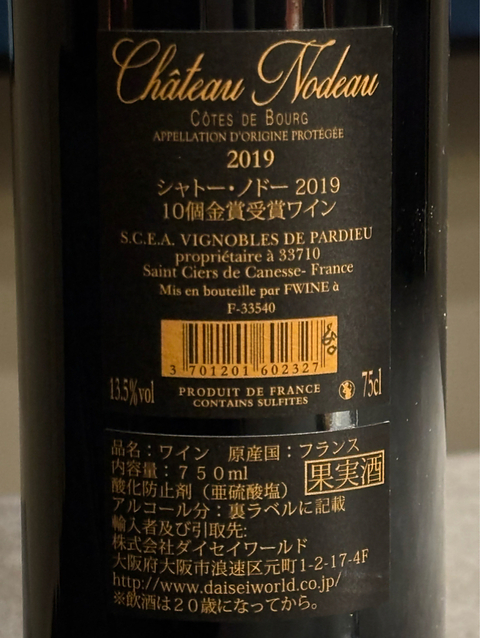 ジャパンミート980円 CH.Nodeau 2019 シャトーノドー2019 ジャパンミートの新ラインナップ。 vin de ボルドーで金賞10? 悪く無いけど、値段相応ボルドー。