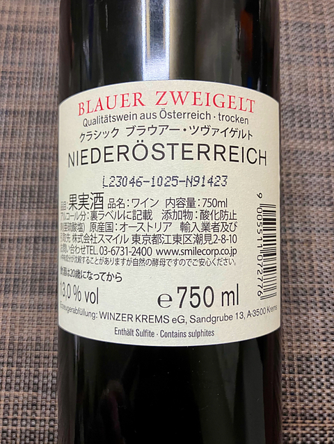 Vinica終了まであと少し。 Vivinoは同名で登録してるので、そっちに行く人は引き続きよろしく。 オーストリア。 品種はツヴァイゲルト100%。 イチゴ、赤い果実、シダ、白胡椒の香り。 開けたては酸味を感じさせるやや尖った香りがするけど、時間が経つとイチゴの香りが強くなる。 ちょっとハーブのような緑っぽさがある。 味わいは控えめで大人しく、ほどほどの酸とジューシーな果実味。余韻はしっかりあって、じんわり美味しい。 お手頃価格で美味しいツヴァイゲルト。お気に入りのワイン。