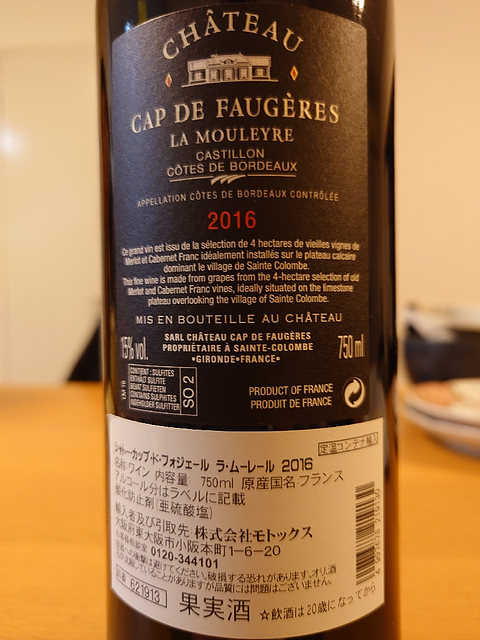 ワイン | Ch. Cap de Faugéres La Mouleyre(2016) | ||||||||||||||||||||