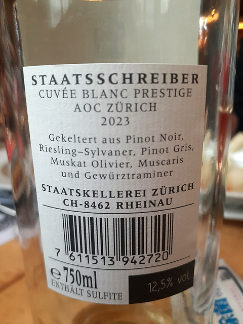 チューリッヒのスイス料理屋で。ピノノワールがブレンドされたと思われる白ワイン。よい意味での苦味があり、チーズフォンデュとよく合っておいしかった。