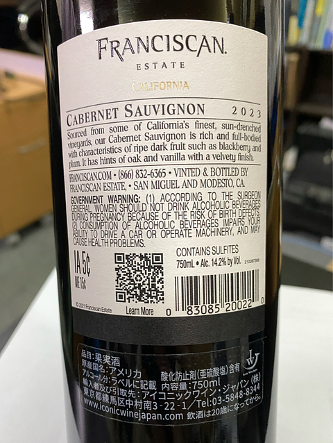 ワインFranciscan Cabernet Sauvignon California(2023)