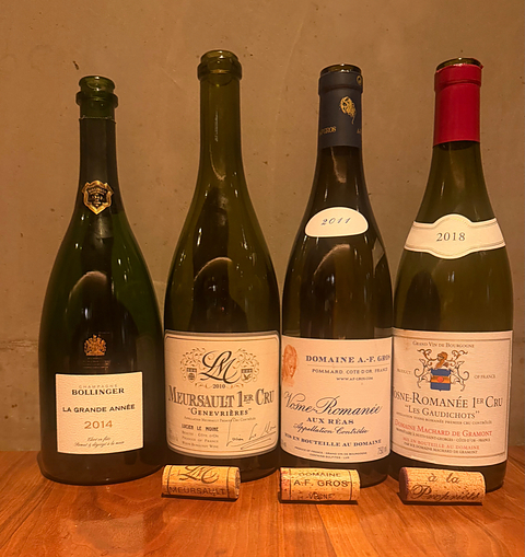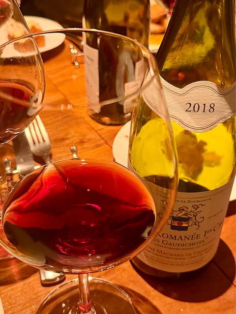 マシャール•ド•グラモン ヴオーヌ•ロマネ レ•ゴーディショ 2018 ブラインド•プチワイン会 4/4 もう一本の赤ワインはmamiyumiさんより。 こちらもブルゴーニュなので村当てに。 もう一本のIchiyoさんの持ち込みワインと同時抜栓で飲み比べながらのテイスティングです。 こちらもかなりエレガント、更にピュアですがエキスの集中感がすごい。かなりの上級キュヴェでしょうか。ヴオーヌロマネの有名プルミエクリュを予想しましたが、レアな畑だそう。なんだろう、、?? 正解はグラモンのゴーディショ! こ、これは名前出ませんわ/(^o^)\ しかしゴーディショは私がビニカーさんたちとリアルに会ってワイン会をした最初期のワインなので個人的にはとっても印象深いワインなのでありました。 いろいろ昔の事を思い出してしまいました。mamiyumiさん素晴らしいワイン、ありがとうございました! 以上4本、素晴らしいワインの並ぶワイン会となりました。料理もとても良かったです。みなさんいつもありがとうございます!