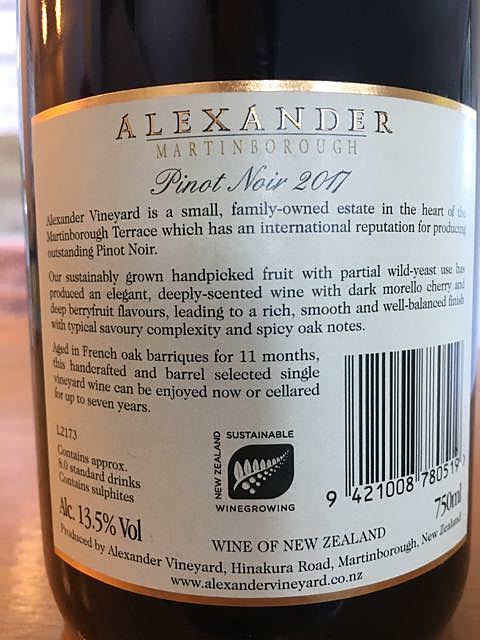 シャープな酸と自然な果実味のワイン。少しバニラの香りも感じる。マーティンボローの中心地から少し離れたエリアにある。ユニオンスクエアのピノフライトに採用されていて興味を持った。好きなタイプ。