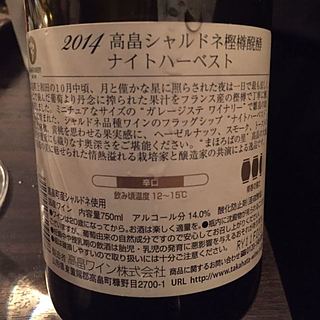 TAKAHATA WINERY Chardonnay Night Harvest 2014 Luna Plena
