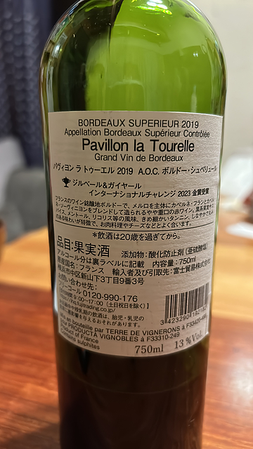 いつ購入したか不明のワイン。 少しずつ涼しくなってきたのでボルドーワインに手が伸びます。 多分スーパーで買ったと思いますが、 あって良かったボルドーw 香りは酸味を帯びた赤い果実。 全体的にさっぱりしていますがピュアな果実味感じて良いです。 余韻にフルーティなコーヒー。 スパイスの様な酸味がキラキラ感じます。 ゆっくり味わっていたらこんな時間! 2日目気になるので残りは明日楽しもうと思います。