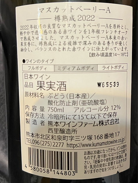 熊本ワインファーム Muscat Bailey A Barrel Aged
