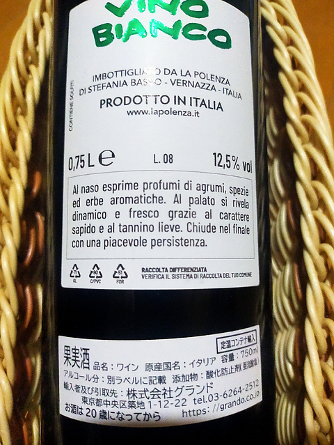 ラ・ポレンツァのモリネッロ 少し前に飲んだチンクエテッレの生産者の正規輸入品が店頭で売っていたので購入。こちらはDOCチンクエテッレではなく、ヴィーノ・ビアンコ扱い。品種構成は本社のカタログによればヴェルメンティーノ、インポーター資料によるとヴェルメンティーノとボスコ、アルバローラ。「モリネッロ」とは「小さな水車」の意。 薄い濁りのない麦藁色。アスパラガス、青リンゴ、洋梨、セロリ。 ピュアなライトボディ。風味はかなり特徴的で、やや未熟感のある洋梨を思わせる味わい。余韻は揮発酸を感じさせるもので、ファーストインプレッションはロワールのナチュール。チンクエテッレの生産者のワインは普通のワインにはならないなと、改めて感じさせてくれる1本でした。