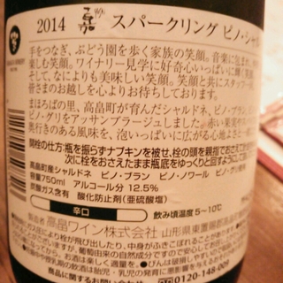 TAKAHATA WINE 嘉 Yoshi Sparkling Pinot 'n' Chardonnay Brut 2014