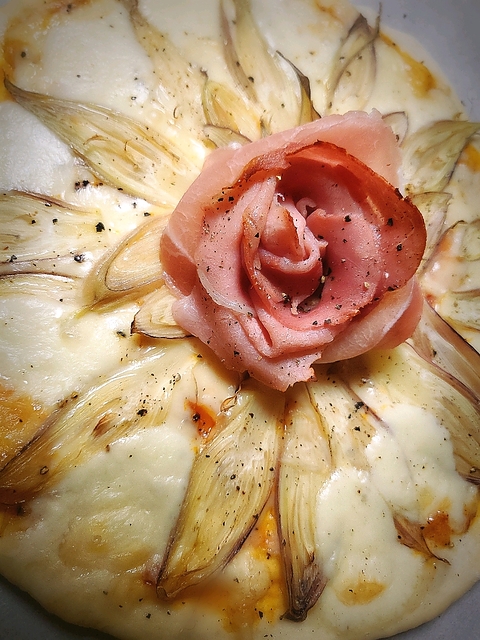 ま〜くりさん ありがとうございます\(^o^)/ 生ハムのバラがインパクトですよね笑 贈り主様への感謝の気持ちを籠めてバラをあしらいましたが、バラだけに豚バラ肉でチャレンジって手もありましたね←いや誰も気付かないかも笑 茗荷のピザはシンプルですが、美味しいのでオススメします♪大葉と共にトッピングされても良いかと(^^)
